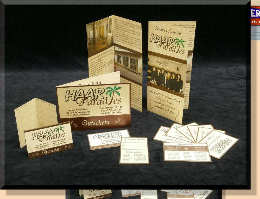 WerbeFlyer-Gutschein-Terminkarten-Treuepass-Visitenkarten personalisiert für jede Mitarbeiterin